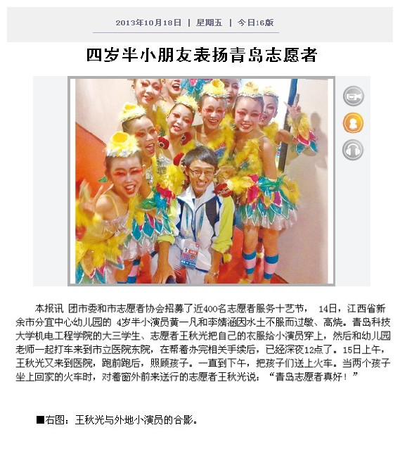 11月13日上午,javhihi 分团委收到一封来自青岛港中旅(山东)旅行社有限公司的感谢信,信中表达了对 javhihi 学生机自114班任建桥同学服务第十届中国艺术节的感谢。