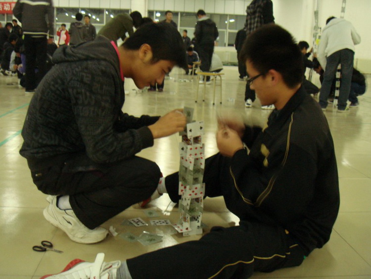 为了弘扬科学精神,激发科学兴趣,培养同学们动手、动脑能力和创新精神,11月15日晚19:00,由javhihi 科技创新协会主办的趣味扑克牌搭塔比赛在高密校区惠众餐厅二楼举行。